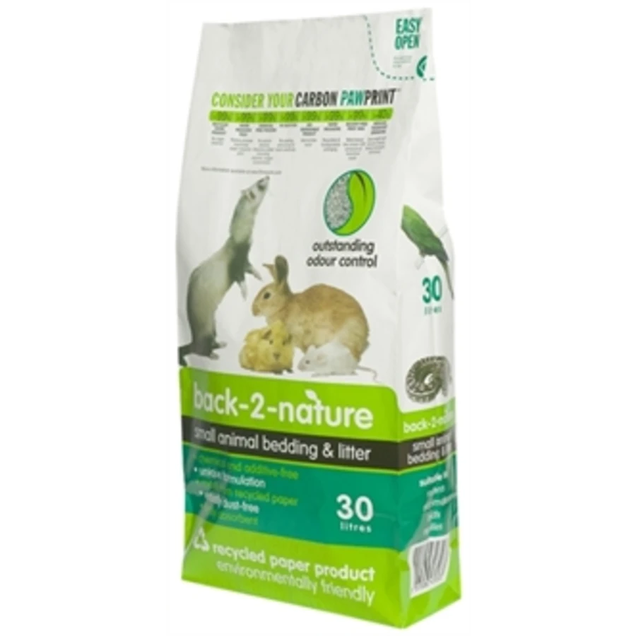 De unieke Back-2-Nature bodembedekking voor knaagdieren en andere kleine dieren is gemaakt van > 99 % gerecycled papier zonder toevoegingen of chemicaliën.