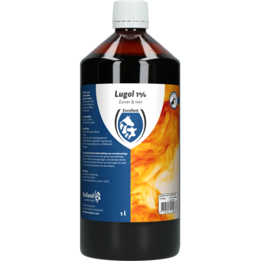 LUGOL is een kaliumjodide-jodium in water. Uitermate geschikt voor reinigen en spoelen. Schudden voor gebruik. Buiten bereik van kinderen houden. Uitsluitend voor uitwendig gebruik. Voorzichtigheid is geboden in geval van jodium-overgevoeligheid en schildklierafwijkingen.
