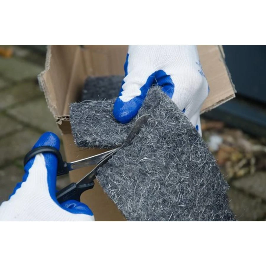 De weringsband van Knock Off is 5 meter aan flexibel, roestvrij en duurzaam materiaal bedoelt om gaten en kieren af te dichten zodat muizen en ratten geweerd worden. Het materiaal is eenvoudig op maat te knippen met de meegeleverde schaar en ‘kneedbaar’ zodat het makkelijk in de op te vullen holte geduwd kan worden. De weringsband zet niet uit of krimpt niet in onder wisselende weersomstandigheden.