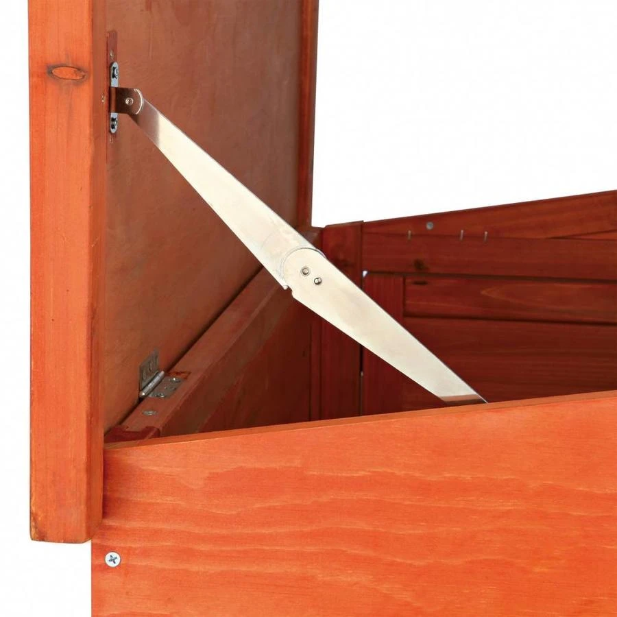 Dit luxe buitenverblijf met ren van Trixie is een compleet verblijf voor uw konijn of cavia. Het is gemaakt van gebeitst vurenhout met stevig metalen, gepoedercoat traliewerk en bitumen dak. Het verblijf bestaat uit twee verdiepingen met beneden een ren en schuilplek.