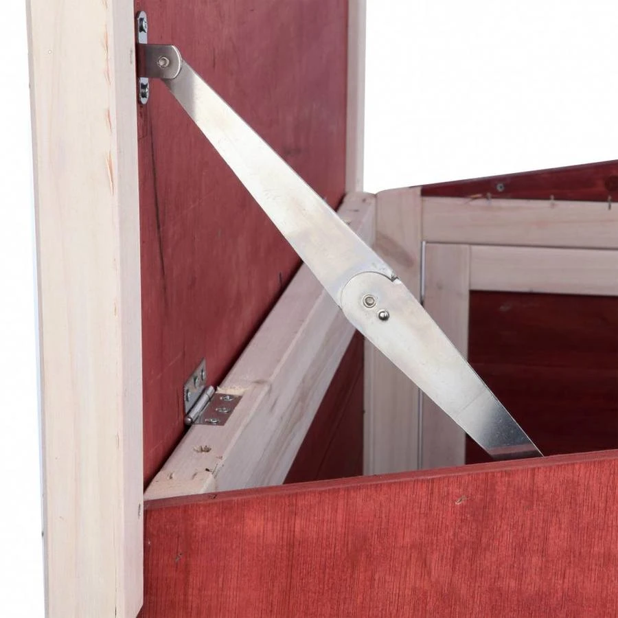 Door de kunststof uitschuiflade is het hok makkelijk te verschonen. De dakhelften zijn te openen zodat binnenin er makkelijk bij kunt. Door de geringe afstand tussen de spijlen (2 cm) in het traliewerk is het ook geschikt voor de opfok van jonge dieren.
