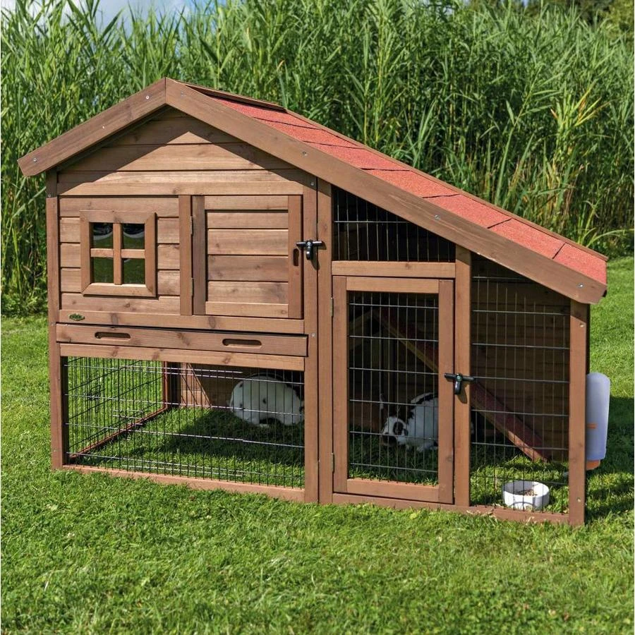 Het Trixie Groot buitenverblijf met ren is een compleet verblijf voor uw konijn of cavia. Het is gemaakt van gebeitst vurenhout met stevig metalen, gepoedercoat traliewerk en bitumen dak. Het verblijf bestaat uit twee verdiepingen met beneden een ren en schuilplek.