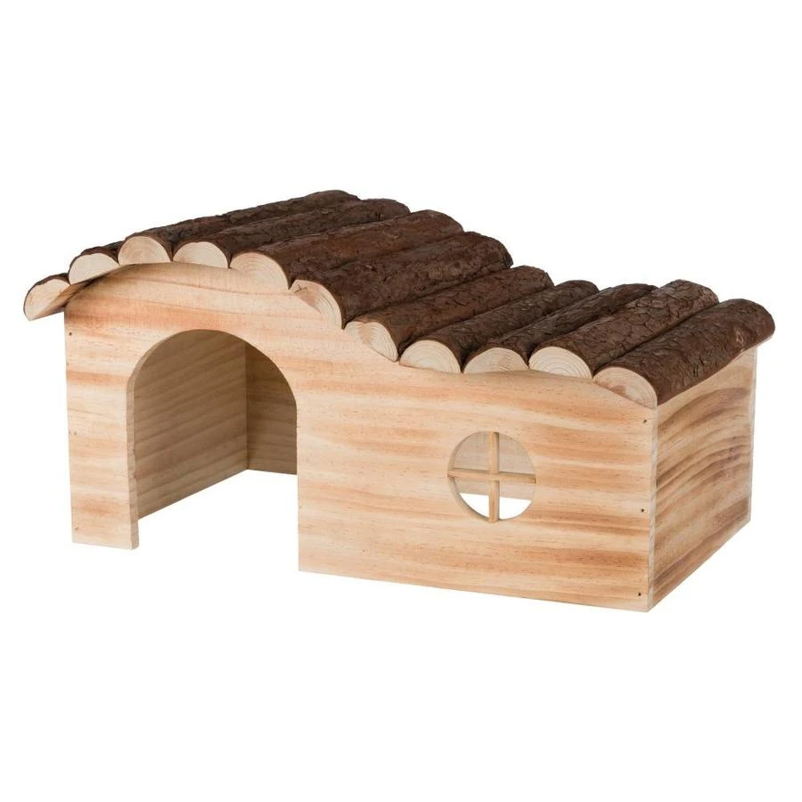 Trixie Huisje Hanna is een schuil- of slaapplaatsje voor uw knaagdier. Het is gemaakt van gevlamd natuurhout.