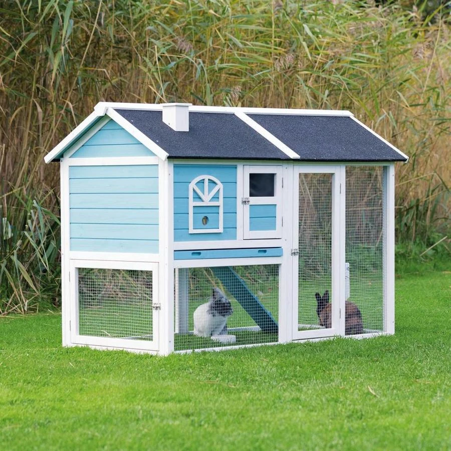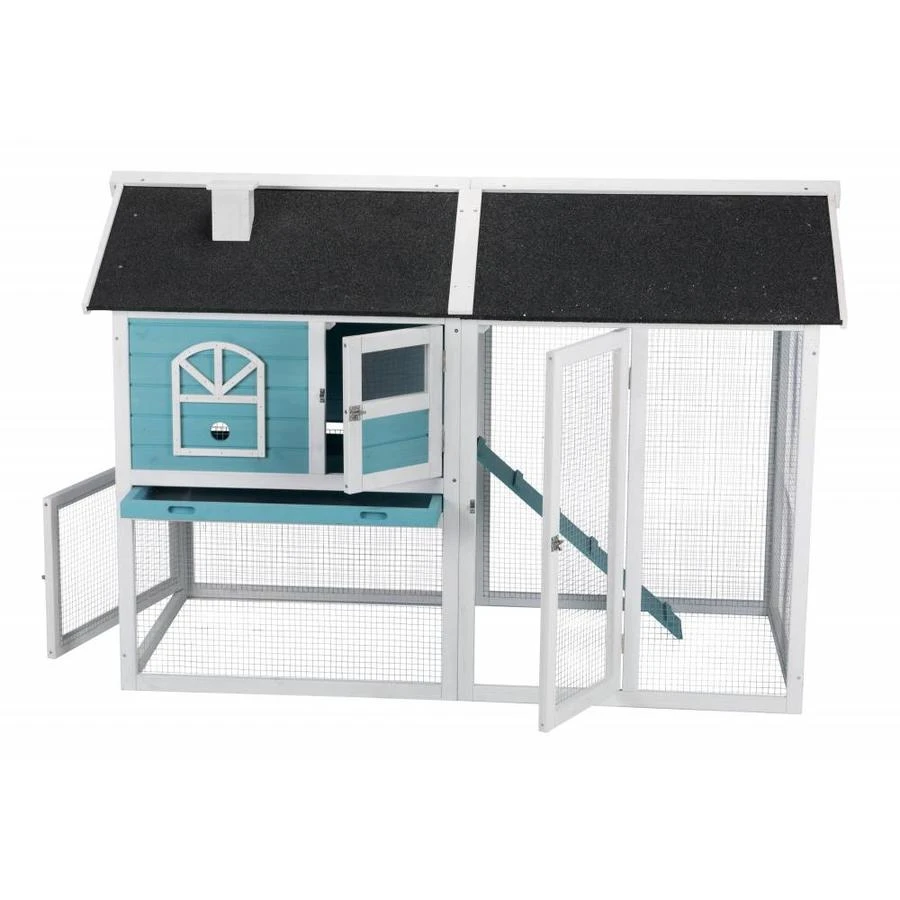 Het kleindierverblijf met ren van Trixie is een compleet dierenverblijf met twee verdiepingen. Het is gemaakt van gebeitst vurenhout met bitumen dak en de ren is van gegalvaniseerd metaal. De ren is overdekt en biedt daardoor de mogelijkheid om te schuilen.